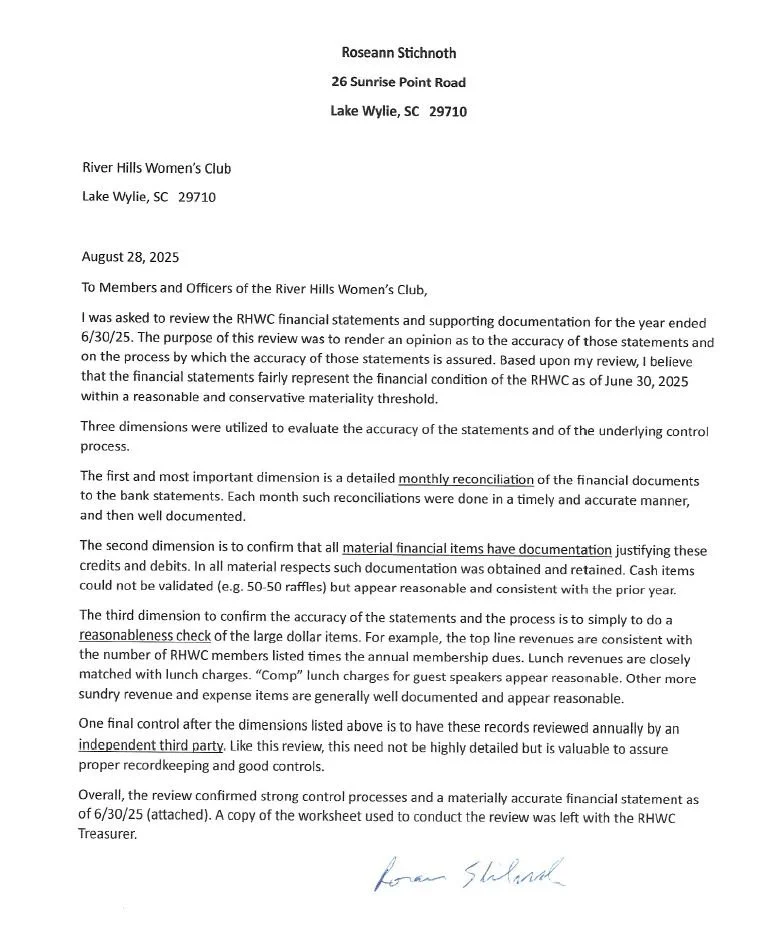 River Hills Women’s Club 2024-2025 Financial Report